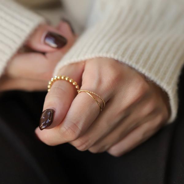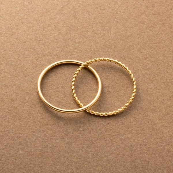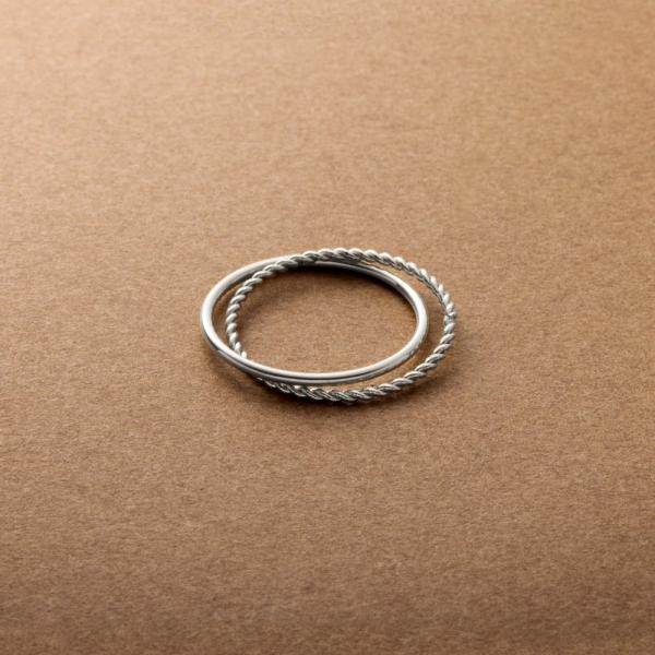 サージカルステンレス リング 指輪 金属アレルギー 極細 スキンジュエリー 2連 2重 ツイスト ダブルリング 華奢