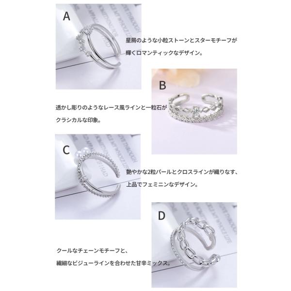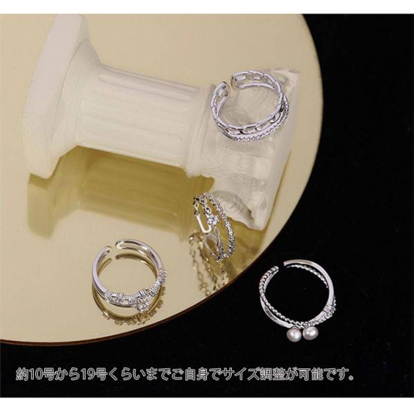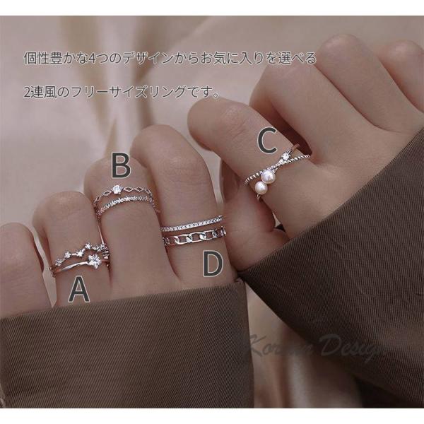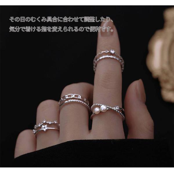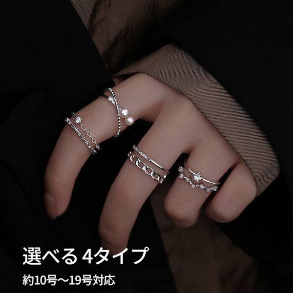 指輪 フリーサイズ リング レディース 選べる 4タイプ 2連風 重ね付け パール チェーン 星 スター 10号 19号 プラチナ コーティング 金属アレルギー対応 爆買