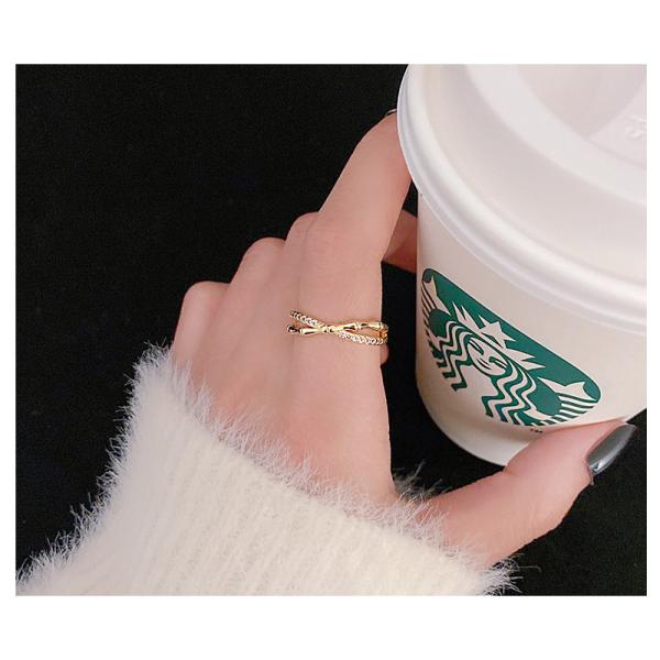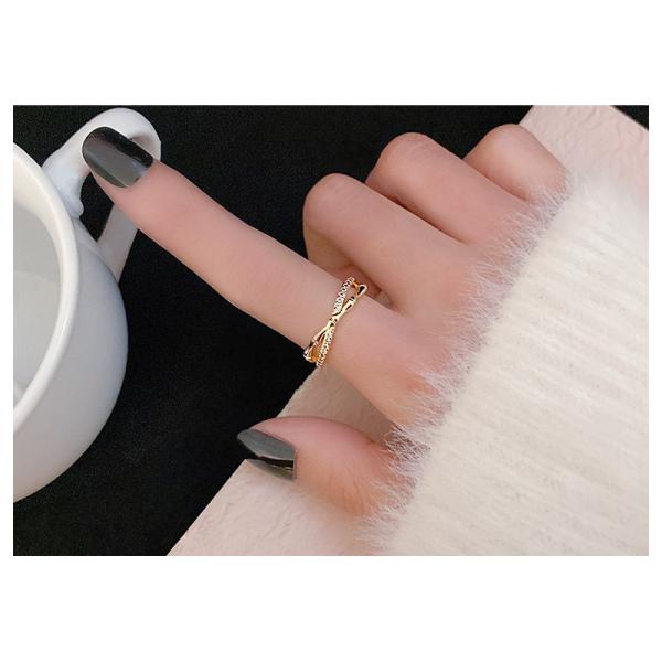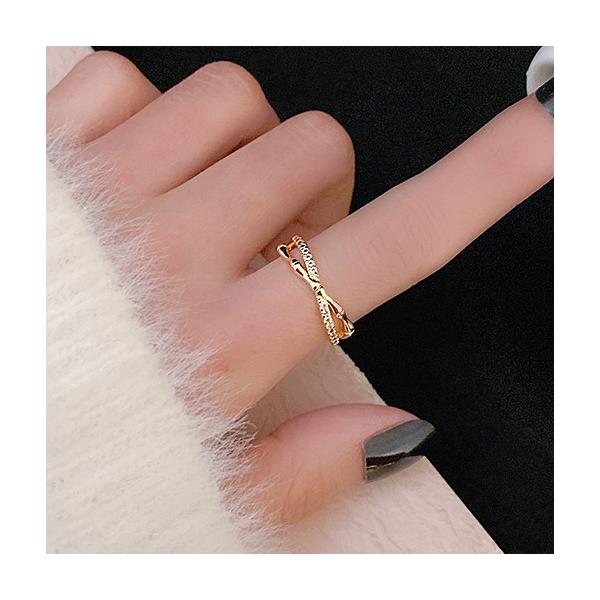 指輪 レディース リング CZダイヤ 金属アレルギー対応 K18コーティング ゴールド 交差デザイン 誕生日 プレゼント 爆買
