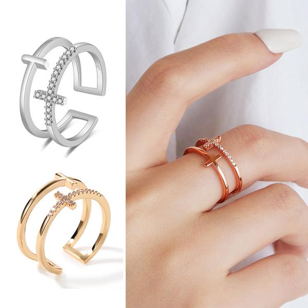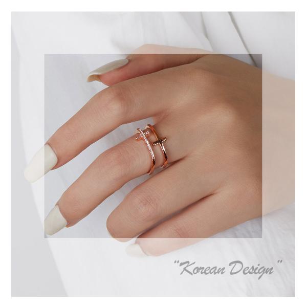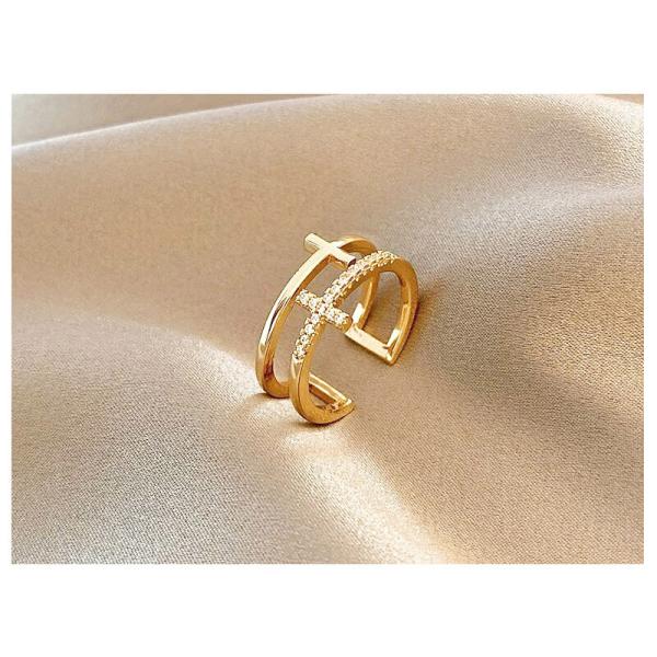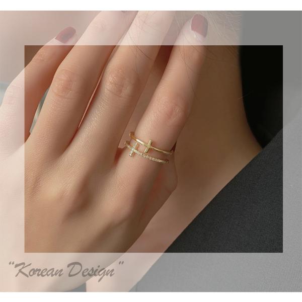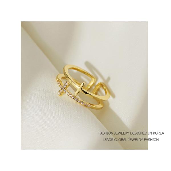 指輪 レディース リング C型リング CZダイヤ 金属アレルギー対応 K18コーティング ダブルリング アクセサリー 誕生日 プレゼント