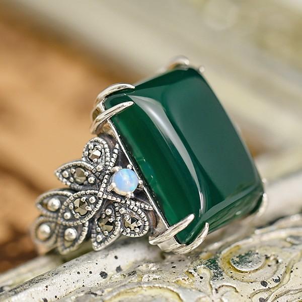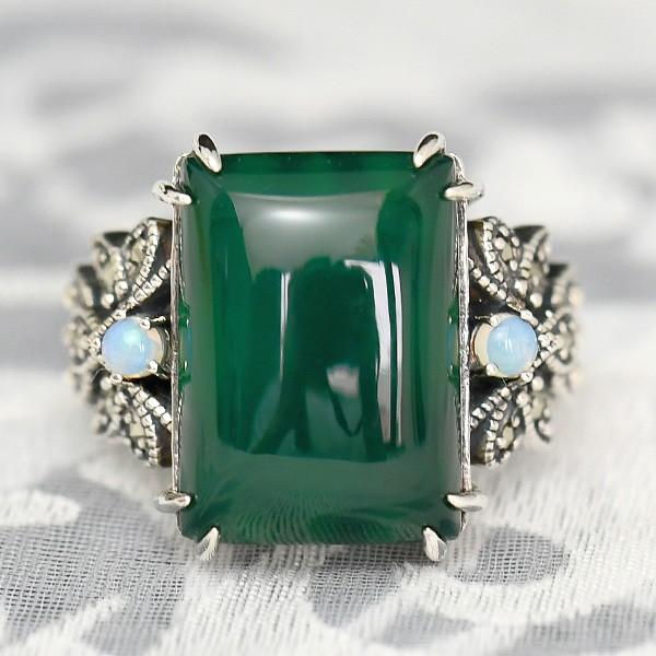 碌山 グリーンアゲート オパール リング みずみずしく静かな深緑 RP 403R0234-GAC