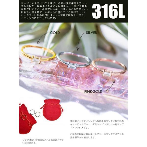 指輪 リング キュービックジルコニア メンズ レディース サージカルステンレス リング 316L アンドロメダ ゴールド シルバー ピンクゴールド 細身 シンプル 華奢