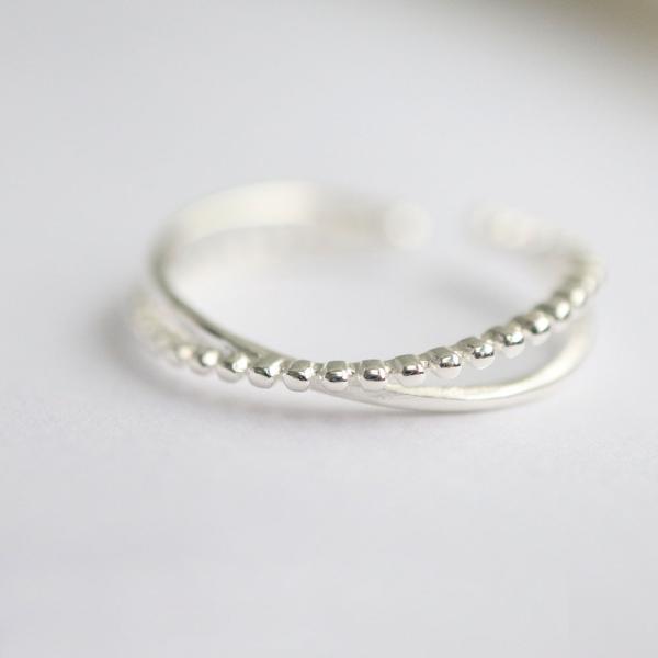 SV925 スターリングシルバー クロスライン オープンリング 1個