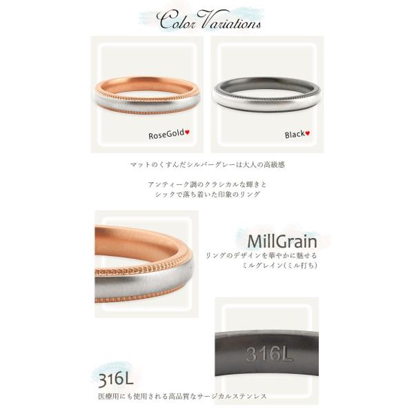 ペアリング ステンレス 結婚指輪 ペア 安い リング刻印無料 甲丸 つや消し ミルグレイン 指輪 ブラック ピンク ローズゴールド 名入れ サージカルステンレス