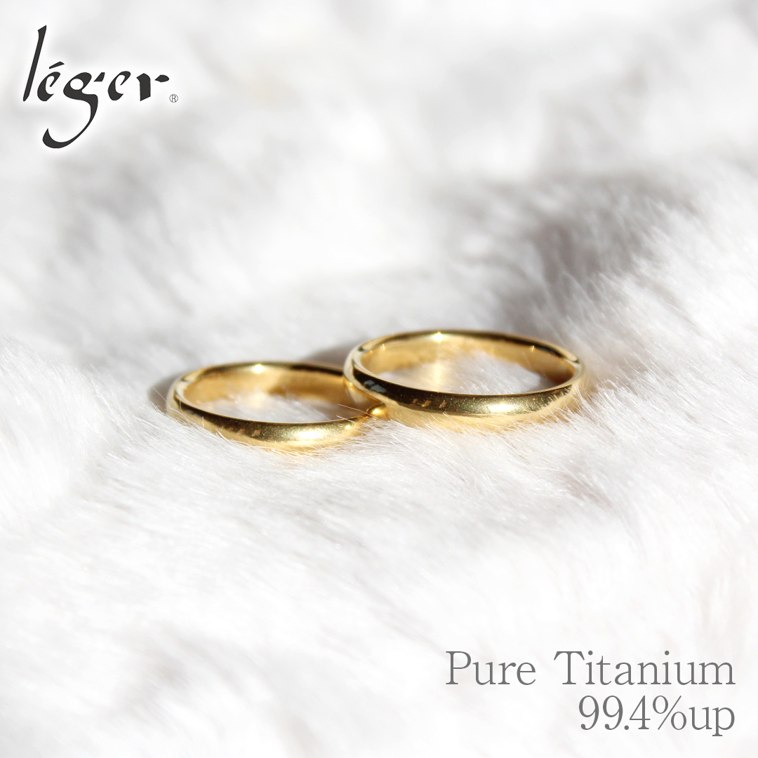 ペアリング 結婚指輪 チタン IPゴールド 甲丸 3.5mm幅 名入れ可能 マリッジリング かまぼこ 日本製 金属アレルギー対応 U01GLpair レジエ レジェ leger