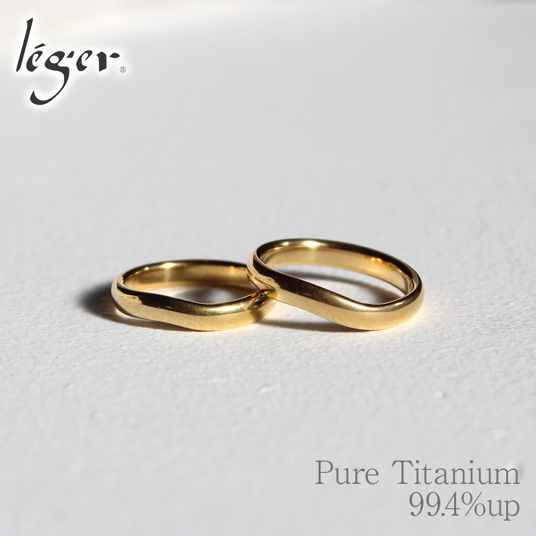 ペアリング 結婚指輪 チタン ゴールド カーブ 3.5mm幅 名入れ可能 マリッジリング 日本製 金属アレルギー対応 U02GLpair レジエ レジェ leger