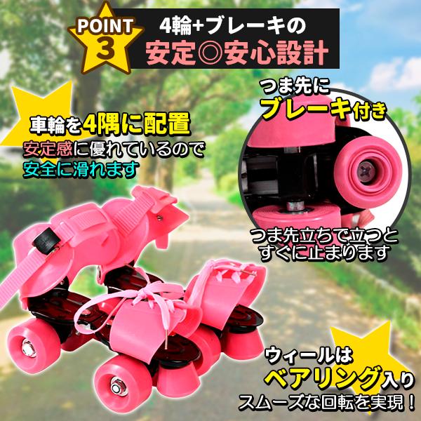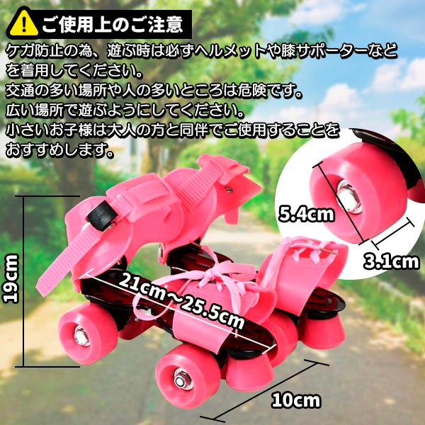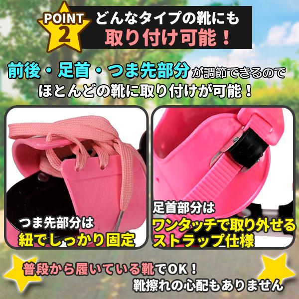 ローラースケート ローラーシューズ 19cm 〜 25cm 子供 キッズ 着脱式 靴につける 調節可能 4輪 女の子 男の子 小学生 20cm 21cm 22cm 23cm 24cm ピンク