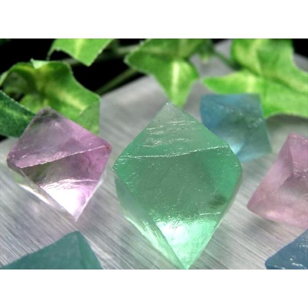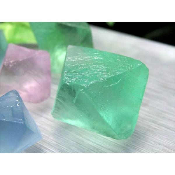 わくわくのサイズMIX 4A つやつや フローライト 8面体結晶 MIXカラー 50gセット 幅約6mm-25mm パープル&グリーン、希少なブルーカラーも 中国 浙江省産 sa-s