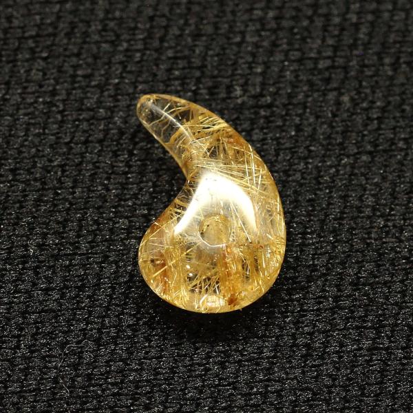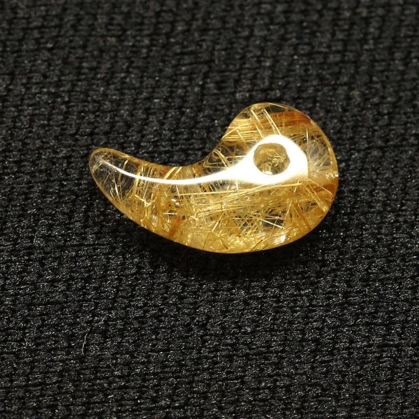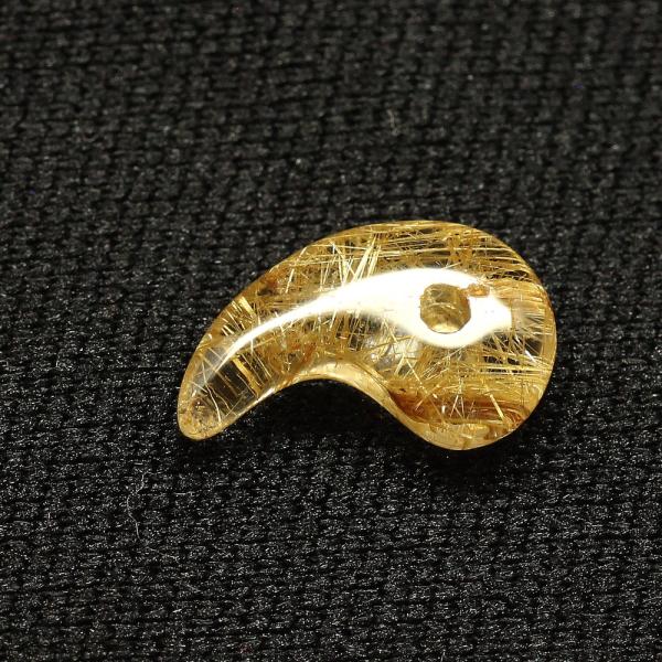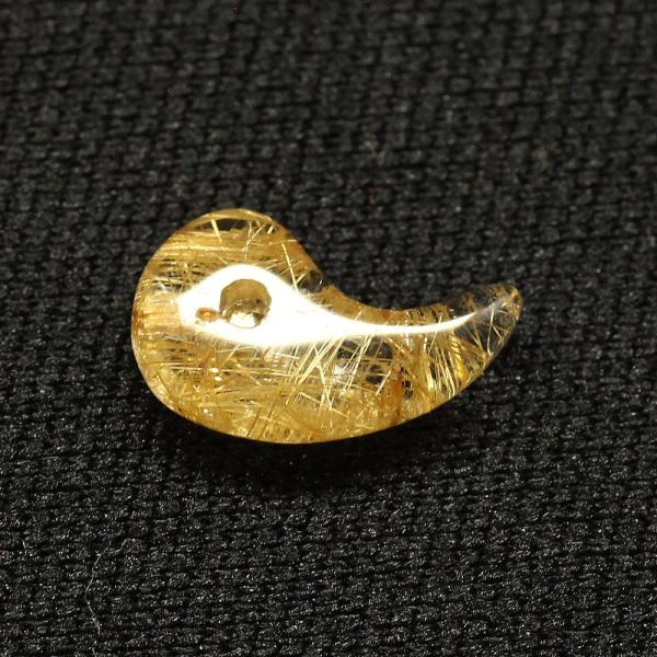 天然石 勾玉ゴールドルチル 約0.8g 小粒で上品な輝き 金運 仕事運 成功 お守り GHM13 交換用ゴム付&巾着付 財運 石 京海堂