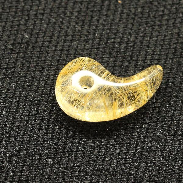 天然石 勾玉ゴールドルチル 約0.8g 密集した金針が明るく輝く 金運 仕事運 成功 お守り GHM16 交換用ゴム付&巾着付 財運 石 京海堂
