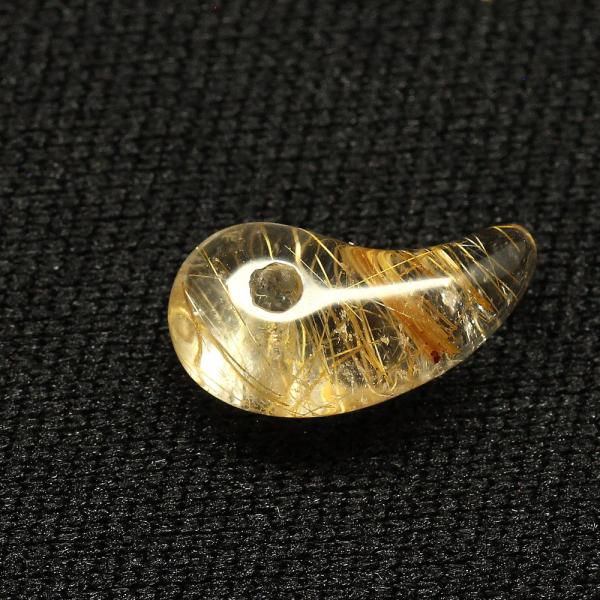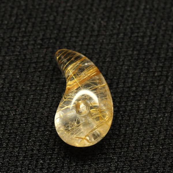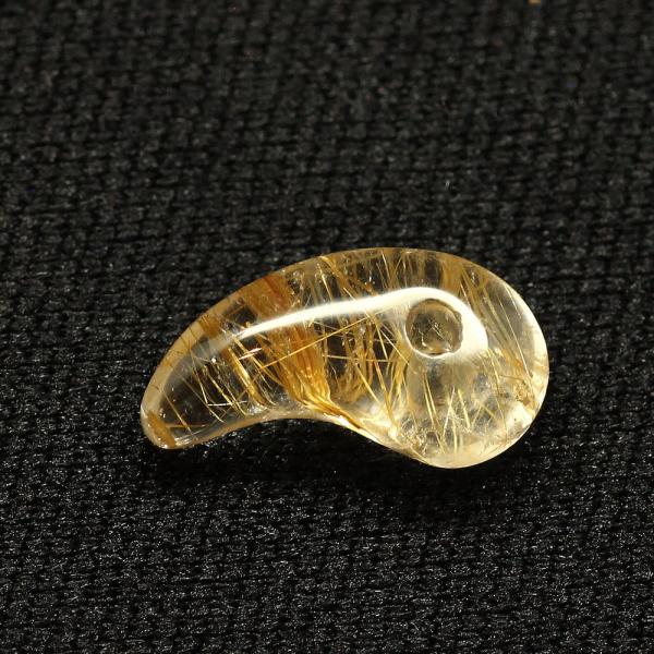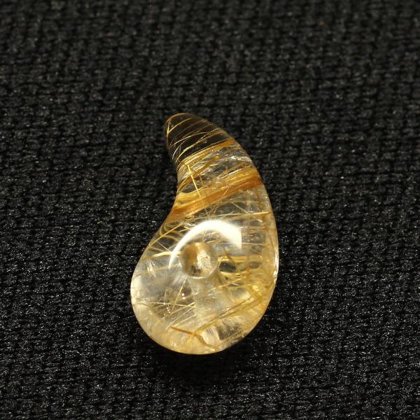 天然石 勾玉ゴールドルチル 約1g 帯状ルチルがアクセント 金運 仕事運 成功 お守り GHM17 スエードコードor交換用ゴム付&巾着付 財運 石 京海堂