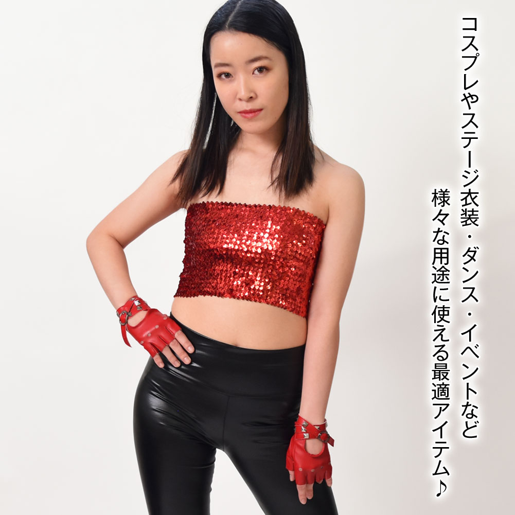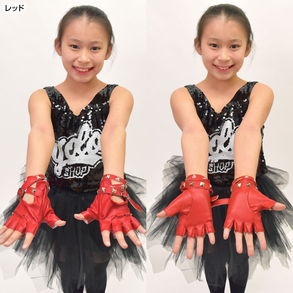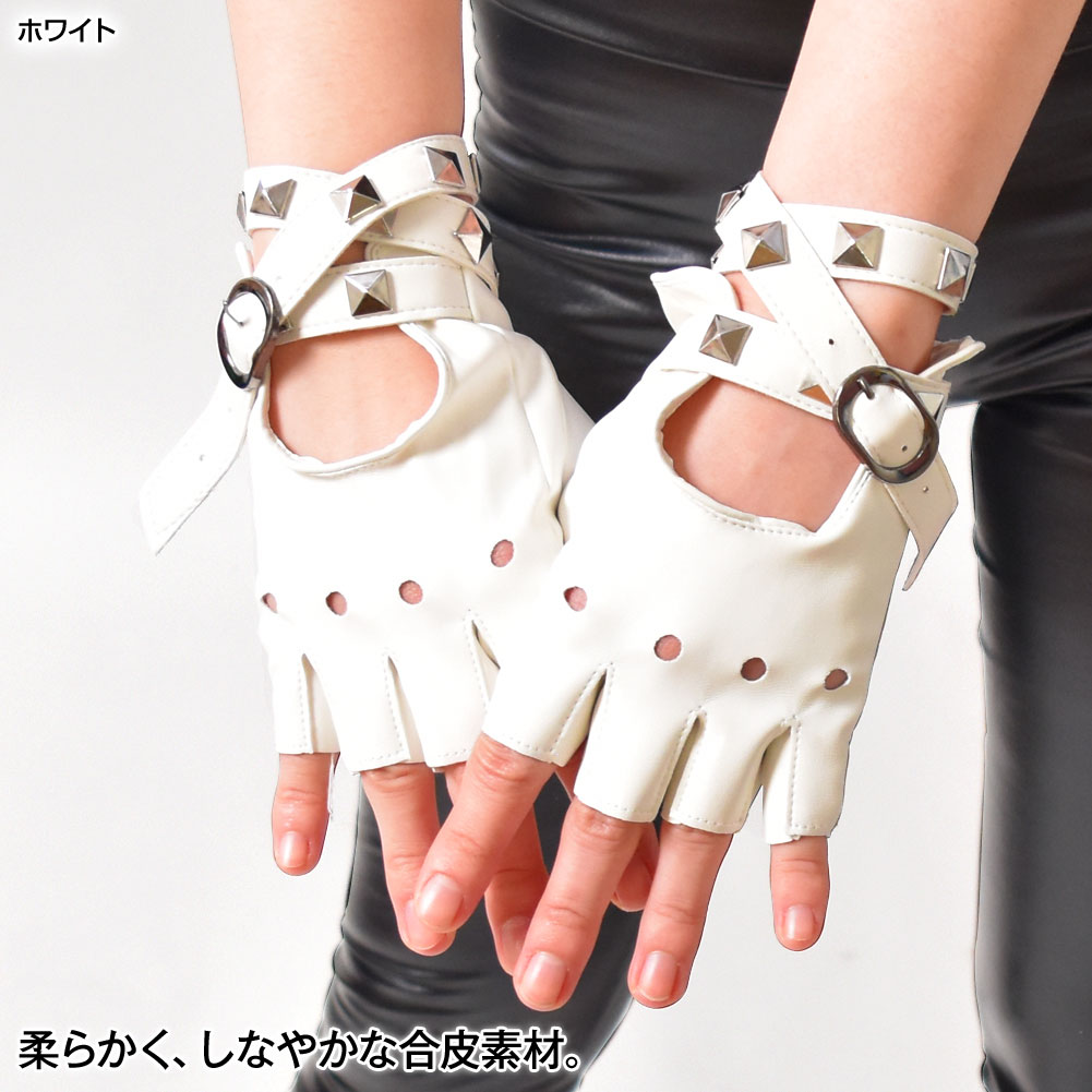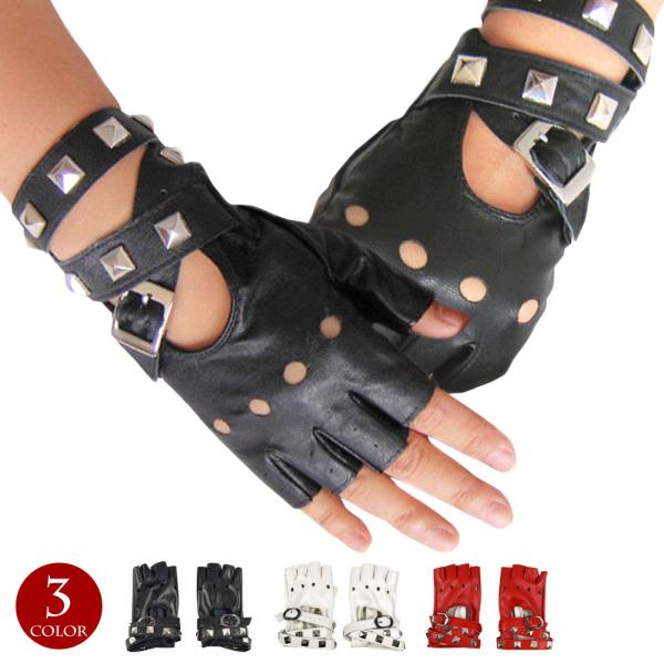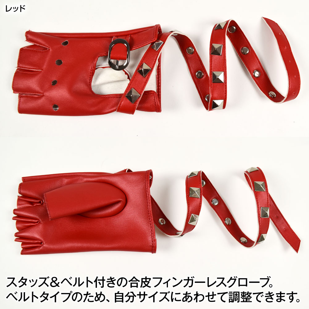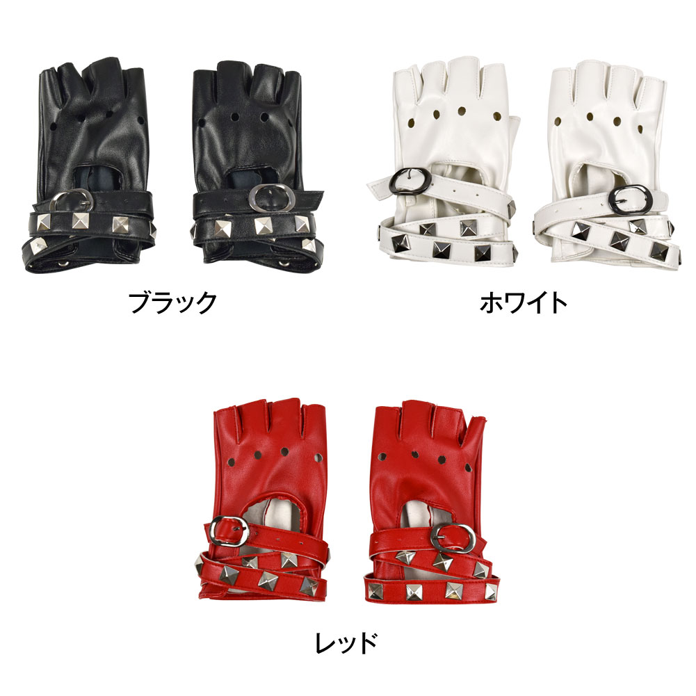 スタッズ&ベルト付き フィンガーレスグローブ 合皮 オープンフィンガー 指なしグローブ ダンス衣装 グローブ 手袋衣装 コスチューム S212AC2 [M便 1/4]