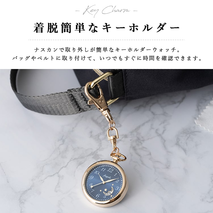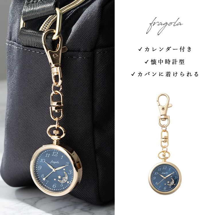 懐中時計 レディース キーホルダー カレンダー 月 フック かわいい 仕事 受験 20代 30代 40代 ギフト 日本製ムーブメント 1年間のメーカー保証付