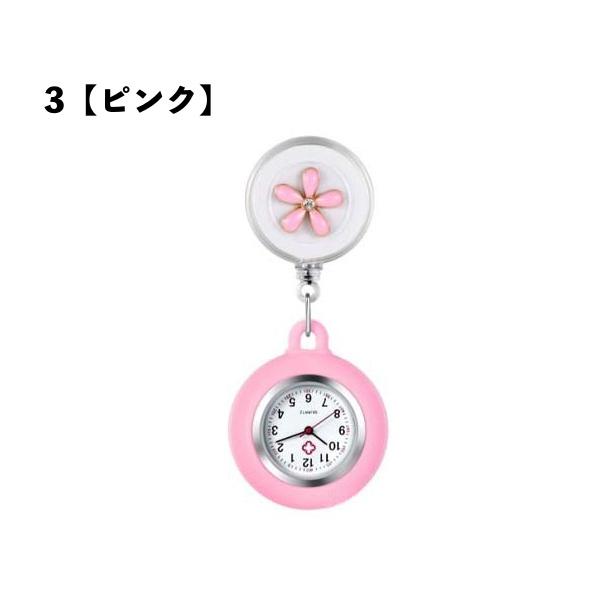 懐中時計 ポケットウォッチ ナースウォッチ 逆さ時計 リール 伸縮 クリップ アナログ 文字盤 フラワー お花 かわいい お洒落 レディース 女性 プ