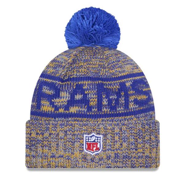 NFL ラムズ ニットキャップ 【海外モデル】サイドライン2025 Sport Cuffed Pom Knit Hat ニューエラ/New Era ブルー