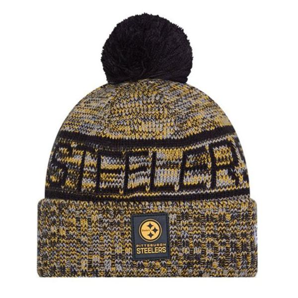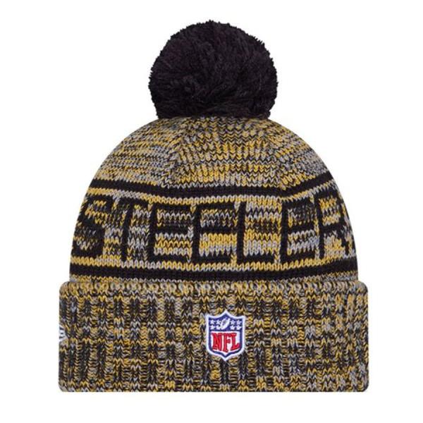 NFL スティーラーズ ニットキャップ 【海外モデル】サイドライン2025 Sport Cuffed Pom Knit Hat ニューエラ/New Era イエロー