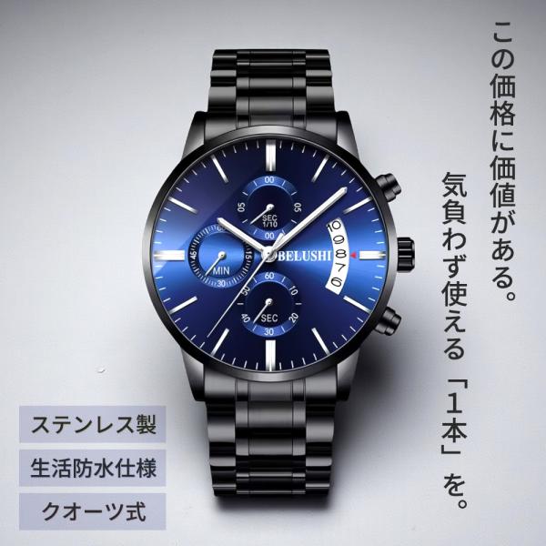 【1000円OFFクーポン!新作記念】 腕時計 メンズ ステンレス ベルト 生活防水 安い アナログ 薄型 時計 男性 プレゼント クロノグラフ
