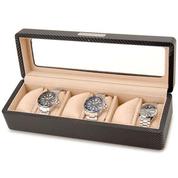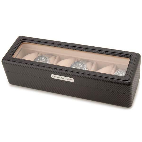 訳あり 塗装ムラ,小キズが数ヵ所あり ロイヤルハウゼン 時計収納ケース Royal Hausen RH-CA-6 カーボン調 時計6本収納