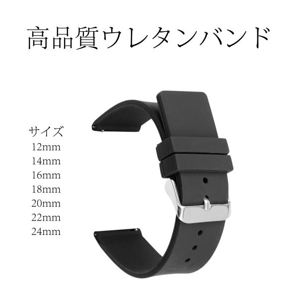 腕時計 時計 ウレタン ゴム バンド ベルト 12mm 14mm 16mm 18mm 20mm 22mm 24mm 柔らかい スマートウォッチ メンズ レディース ブラック 交換