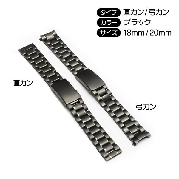 腕時計 交換ベルト 付け替え 時計ベルト ブラック 直カン / 弓カン 22mm / 24mm 送料無料