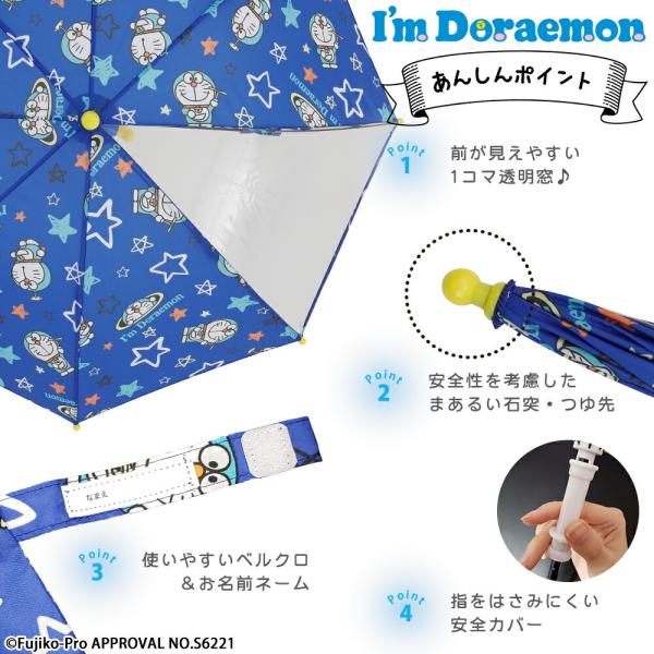 雨傘 長傘 1コマ透明窓 アイムドラえもん Draemon 45cm 手開き式 手動式 キッズ 子供 子ども 男児 ボーイズ 男の子