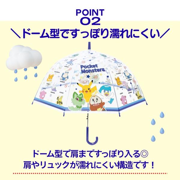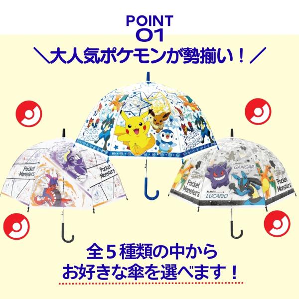 ポケモン ドーム型 ビニール傘 子供 キッズ傘 親骨55cm 8本骨 ジャンプ式 男の子 女の子 軽い 透明 ビニール 可愛い キャラクター ピカチュウ ゲンガー 雨傘