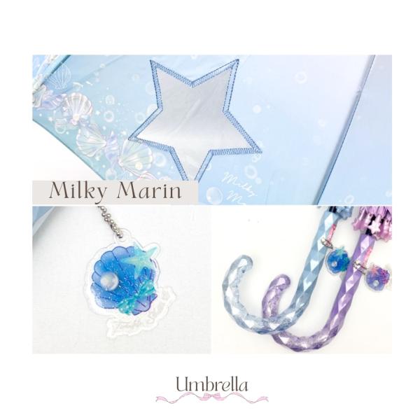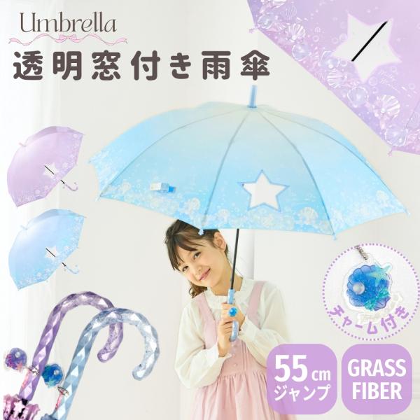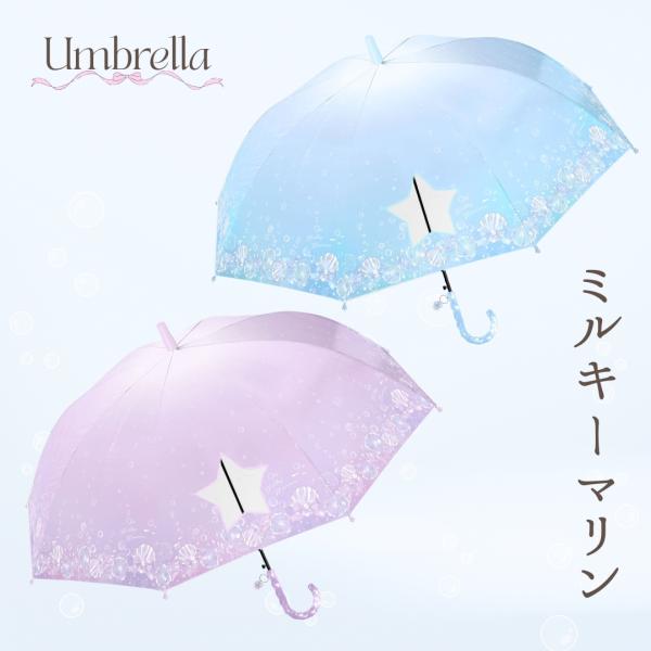 女の子 雨傘 長傘 ミルキーマリン 親骨55cm 8本骨 透明マド チャーム付き 子供傘 キッズ傘 子供 キッズ 可愛い かわいい 傘 ワンプッシュボタン付き ジャンプ傘