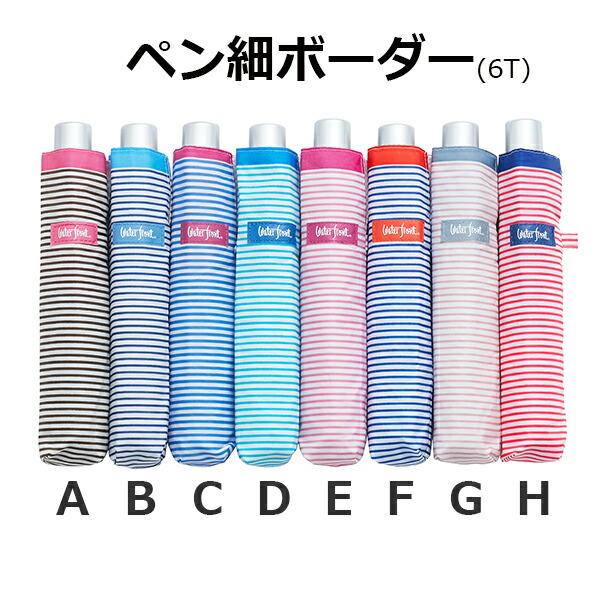 傘 ウォーターフロント 子供用 軽量 ぺん細 ボーダー 折りたたみ傘 レディース キッズ 女性 学生 子供 雨傘 卒業記念品 親骨50cm PHBD-3F50-UH-6T waterfront