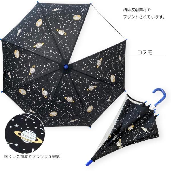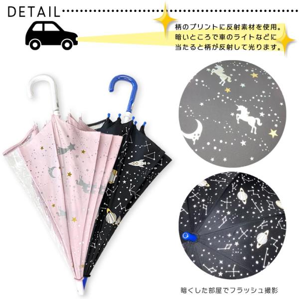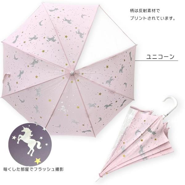 傘 手開き 長傘 反射で光る傘 リフレクタープリント コスモ ユニコーン 透明窓付 雨傘 子供用 キッズ雨傘 親骨50cm 親骨55cm