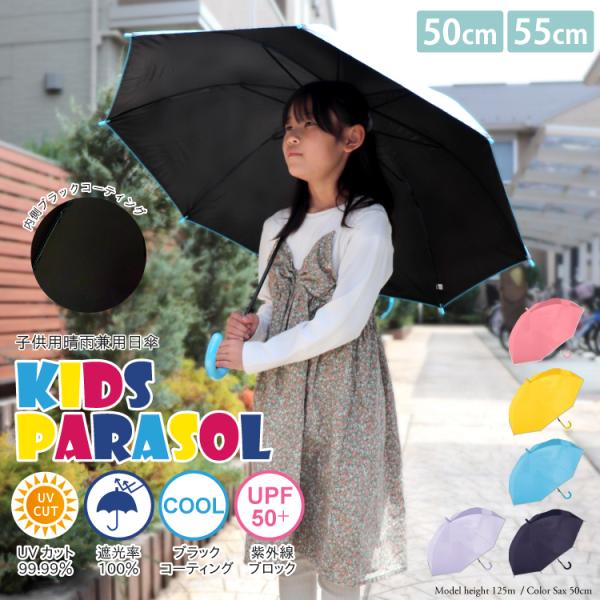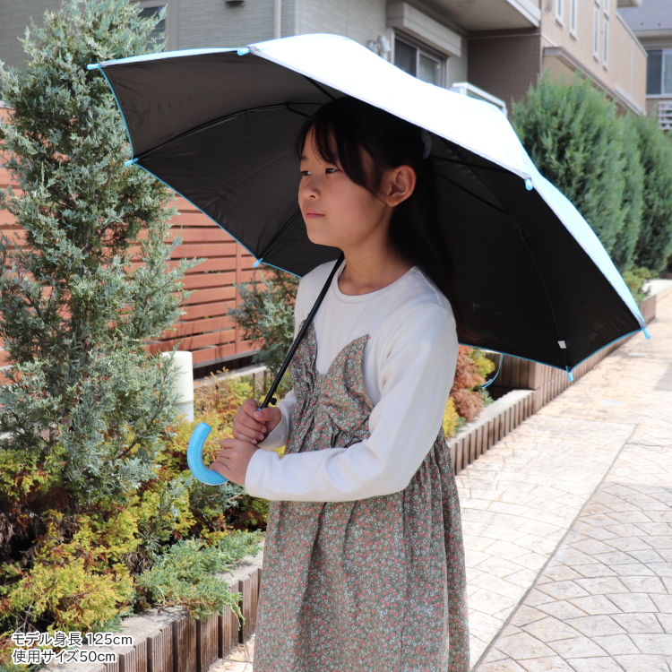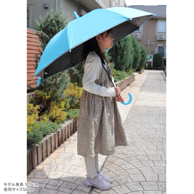 子供日傘 無地 UV 晴雨兼用 ジャンプ傘 50cm 55cm キッズ 反射テープ 遮光 100% UVカット 軽量 遮熱効果 安全 耐風 かさ