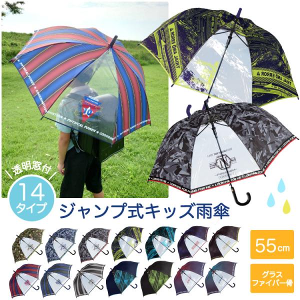 男の子 傘 子供 55cm 雨傘 長傘 キッズ かさ かっこいい 人気 柄 ビニール窓 透明窓 軽量 耐風 グラスファイバー