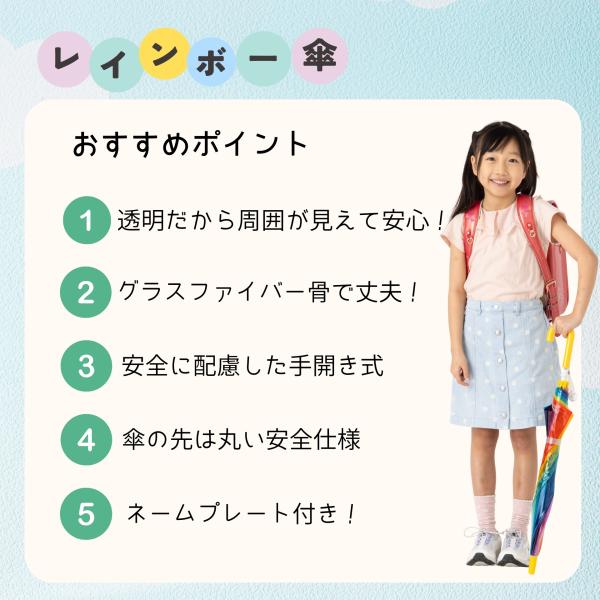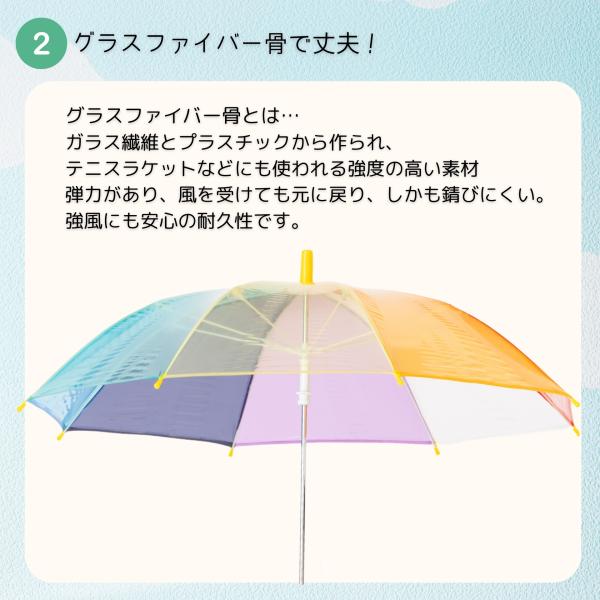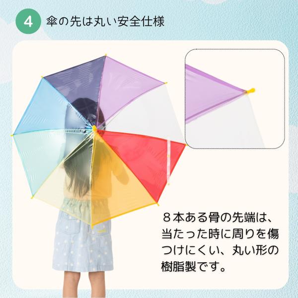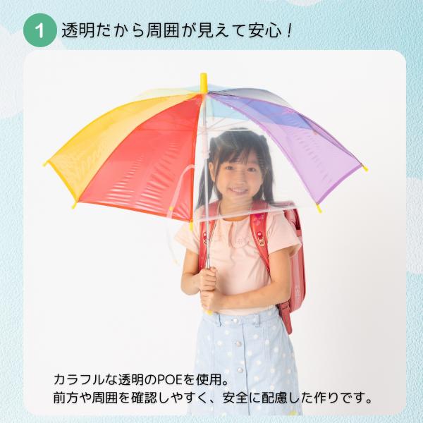 傘 子供 キッズ レインボー 虹色 透明 49cm 男の子 女の子 おしゃれ 軽量 手開き リーベン 0624
