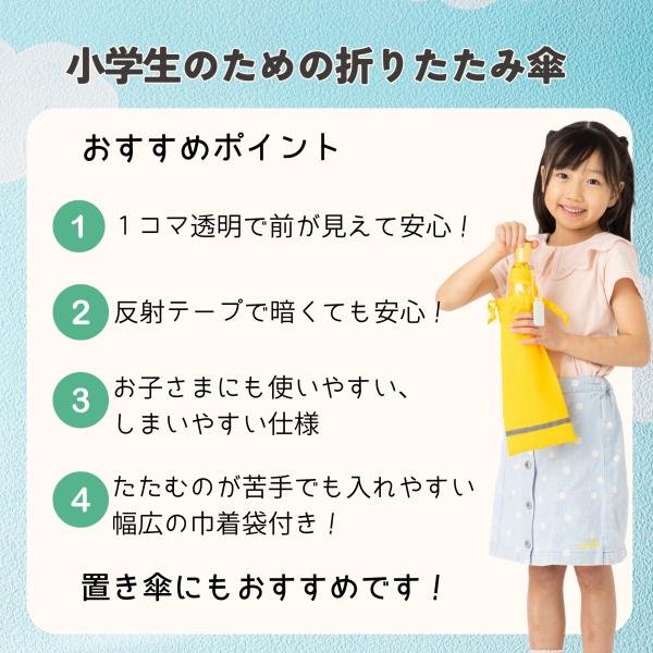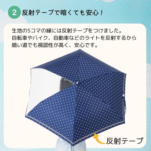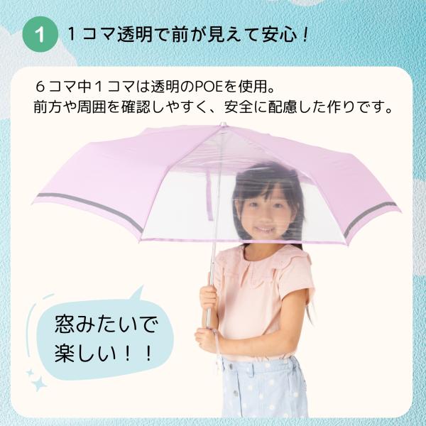 傘 子供 キッズ 折りたたみ 55cm 卒園記念品 透明窓付き 反射テープ 安全 黄色 男の子 女の子 小学生 かんたん開閉 LIEBEN-1330