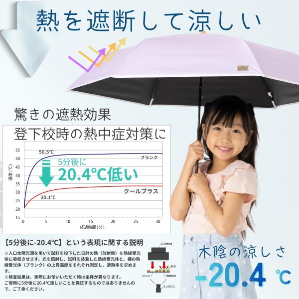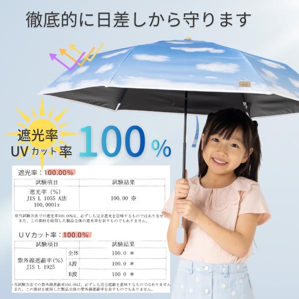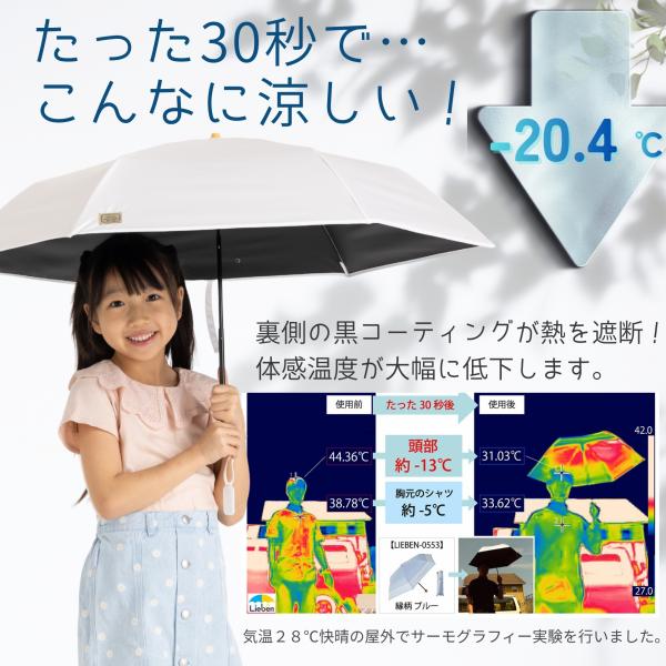 日傘 子供用 折りたたみ傘 50cm×8本骨 晴雨兼用 UVカット 遮光1級 遮熱 小学生 無地/青空 ひんやり傘 クールプラス リーベン 1351