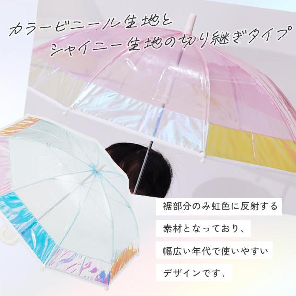 シャイニーアンブレラ キッズ 50cm クリアバイカラーアンブレラ キッズ 雨傘 クリアアンブレラ ビニール傘 手開き式 子ども 長傘 長雨傘