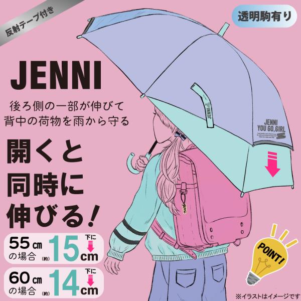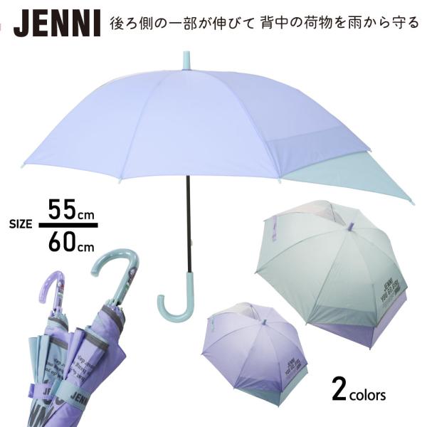 【JENNI】傘 ガールズ 長傘 雨傘 ブランド 後ろが伸びる JENNI ジェニィ 無地 55cm 60cm [2色] おしゃれ かわいい 通学 折れにくい 丈夫 送料無料 10003500