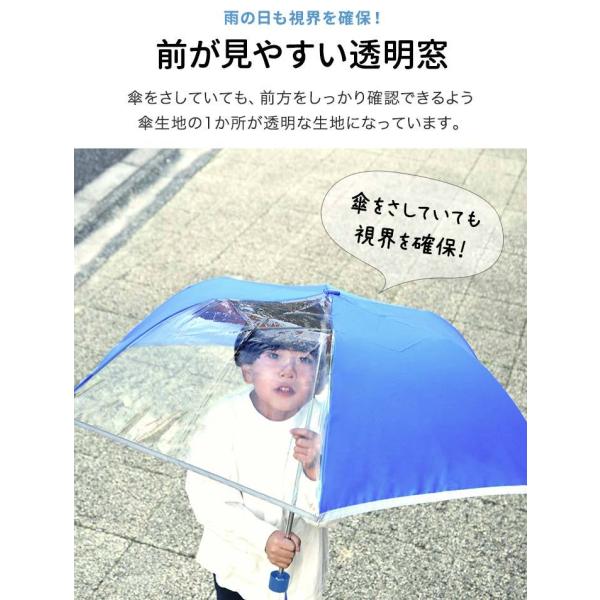 折りたたみ傘 子供用 50cm キッズ 簡単 手開き 透明窓付き 反射テープ付 超撥水 防水 テフロン加工 軽量 前が見える 透明窓 安全 安い 送料無料