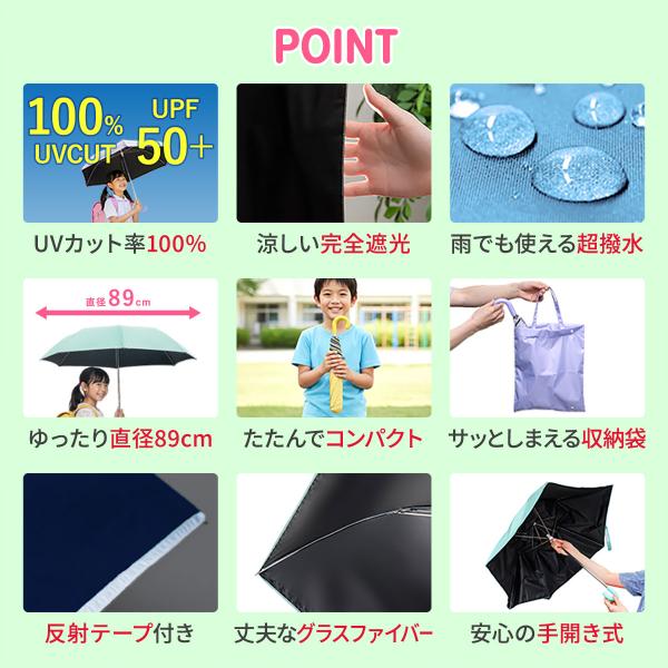 折りたたみ傘 子供 キッズ傘 晴雨兼用傘 50cm 完全遮光 遮熱 UVカット 日傘 雨傘 男の子 女の子 軽量 指をはさまない 安全 反射テープ付き 1年保証 送料無料