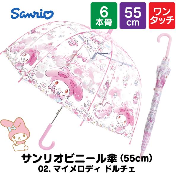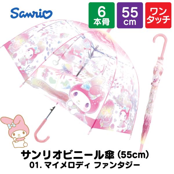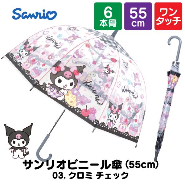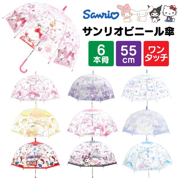子供 傘 サンリオ 女の子 キッズ 55cm キャラクター 小学生 透明窓 ワンタッチ ビニール シナモロール クロミ ハローキティ 安全 軽量 幼稚園 ポイント利用 爆買