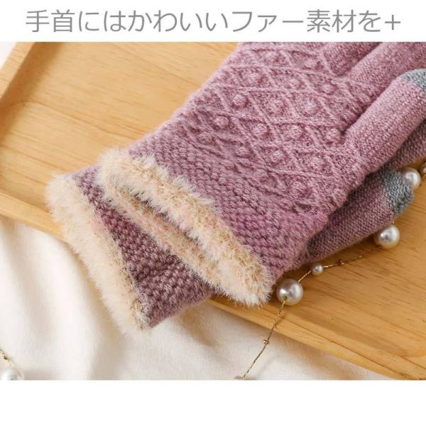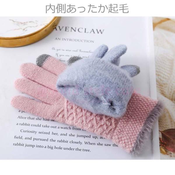 ガールズ 手袋 キッズ ジュニア レディース 女の子 スマホ対応 スマホ タッチグローブ 裏起毛 五本指 可愛い ふわふわ ふわもこ ニット手袋 のびのび 保温 防寒