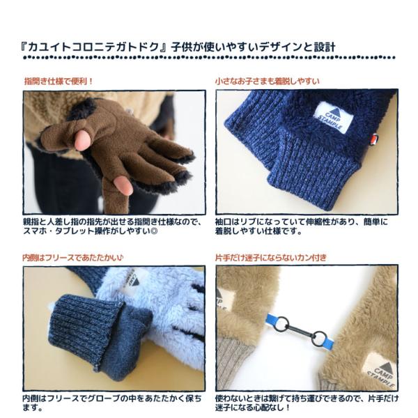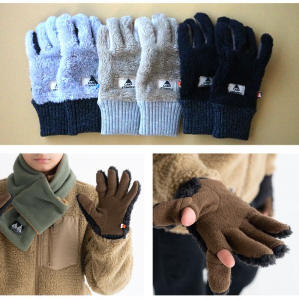 CAMP STAMPLE キャンプスタンプル 62879 スマホ指開き ボア グローブ あったか ジュニア 通学 子供 手袋 5本指 指穴 スマホ タブレット 暖かい 秋 冬 防寒