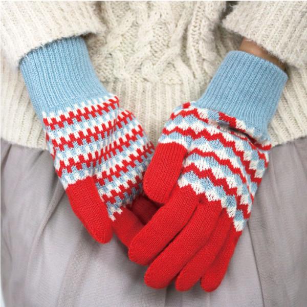 62882 stample スタンプル ジャガードニットグローブ キッズ 子供 手袋 暖かい 冬 ジャガード編み 2WAY 防寒性 5本指 てぶくろ 日本製 ウール混