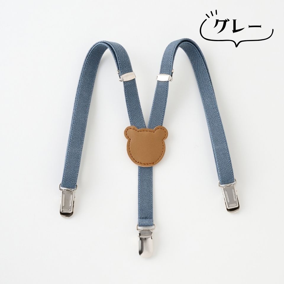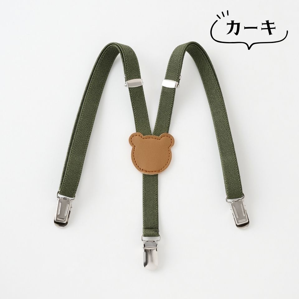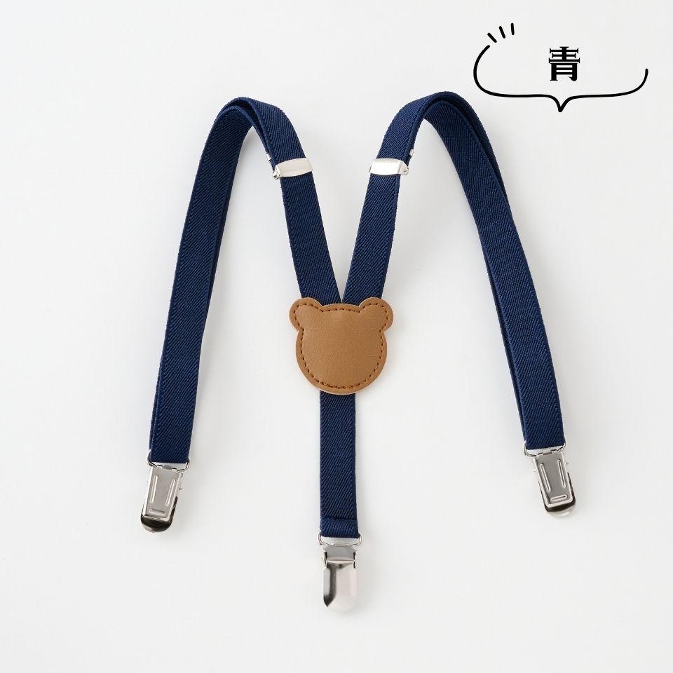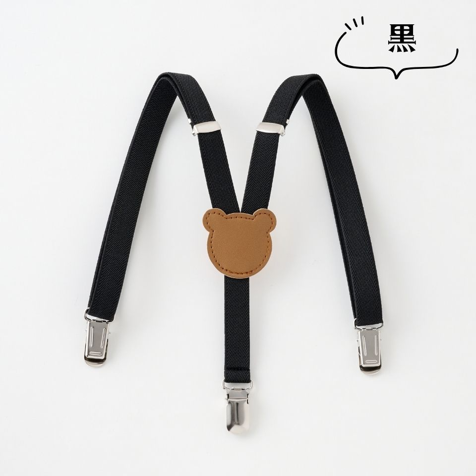 サスペンダー Y型 1.5cm幅 細め 子ども用 クマ 日本製 青 黒 グレー カーキ キャメル 女の子 男の子 七五三 入園 卒園 送料無料
