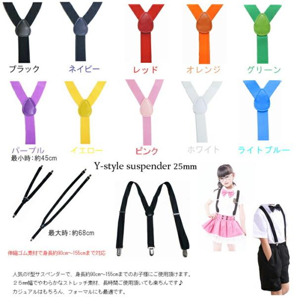 子供用サスペンダーキッズサスペンダーフォーマルやカジュアルにブラック・ネイビー・パープル・イエロー・ピンク・ホワイト 男の子 女の子