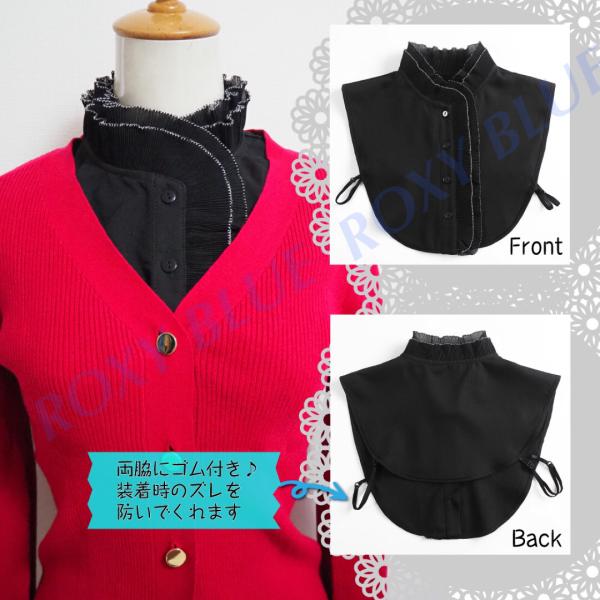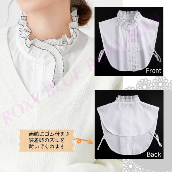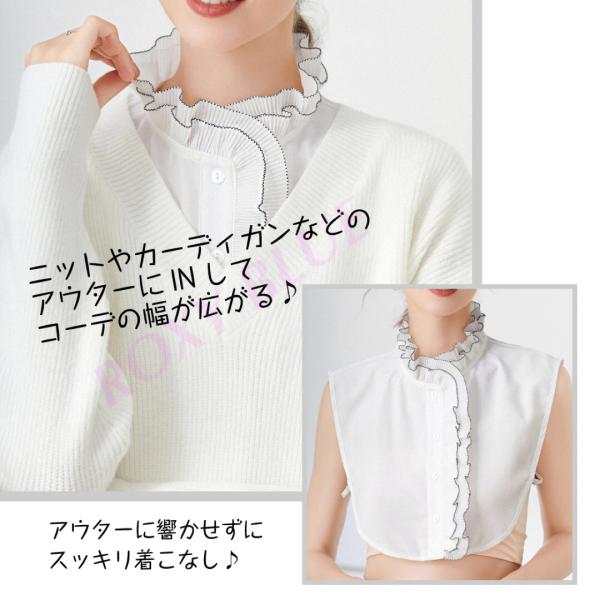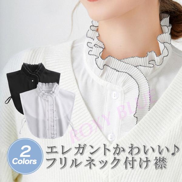 つけ襟 付け襟 フリルネック 立て襟 エレガント かわいい レディース 白 黒 重ね着 コーデ 上品 通気性 オールシーズン シャツ