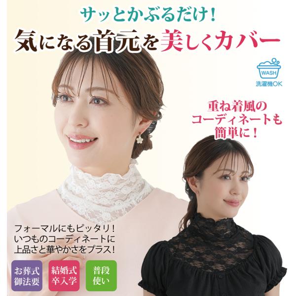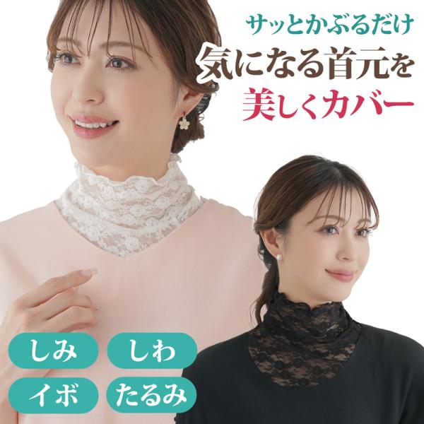 首元カバー ストレッチ レース 透け感 ハイネック フリル おしゃれ レディース ネックカバー 首 隠す 日焼け防止 付け襟 タートル フォーマル きれいめ 328584