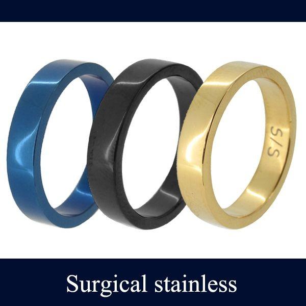 指輪 ステンレスリング メンズ レディース シンプル 平打ち ブラック ゴールド ブルー 7-21号 おしゃれ 金属アレルギー対応 プレゼント