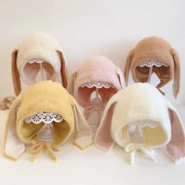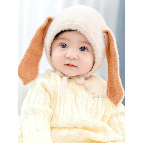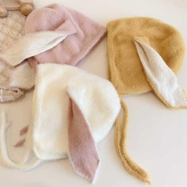 ベビー 帽子 新生児 赤ちゃん うさ耳 ボンネット うさぎ 秋冬 冬 男の子 女の子 かわいい ハーフバースデー 1歳 誕生日 46 48 50 ニット帽 出産祝い プレゼント