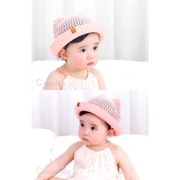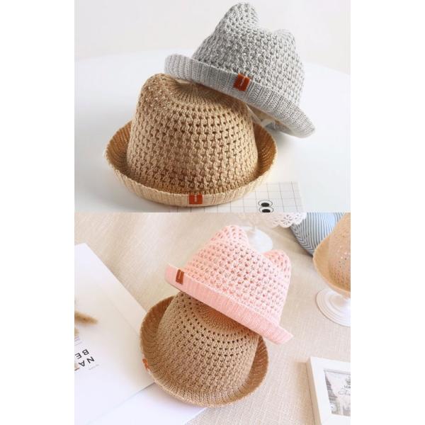 ベビー 帽子 麦わら帽子 赤ちゃん 日除け キッズ 帽子 メッシュ つば 春 夏 くま 耳付き キャップ 新生児 男の子 女の子 ガーゼ かわいい 保育園 アウトレット