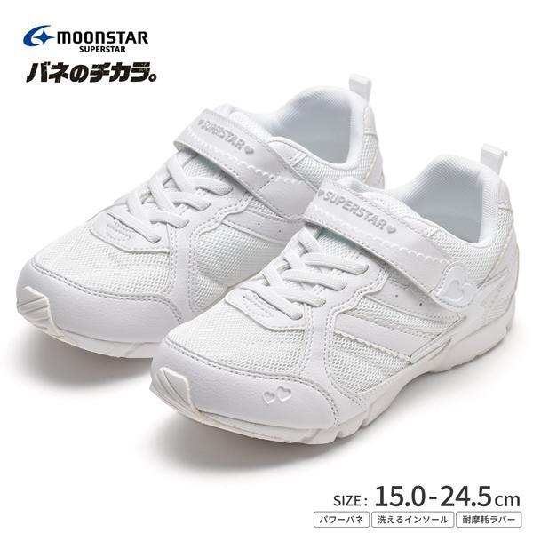スニーカー キッズ 子供 女の子 白 シューズ ホワイト ムーンスター 靴 運動靴 通学靴 学校 小学校 バネのチカラ J753
